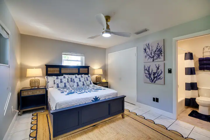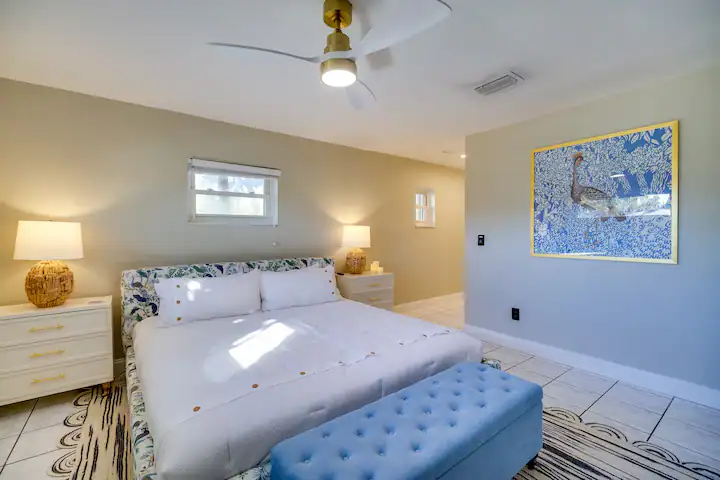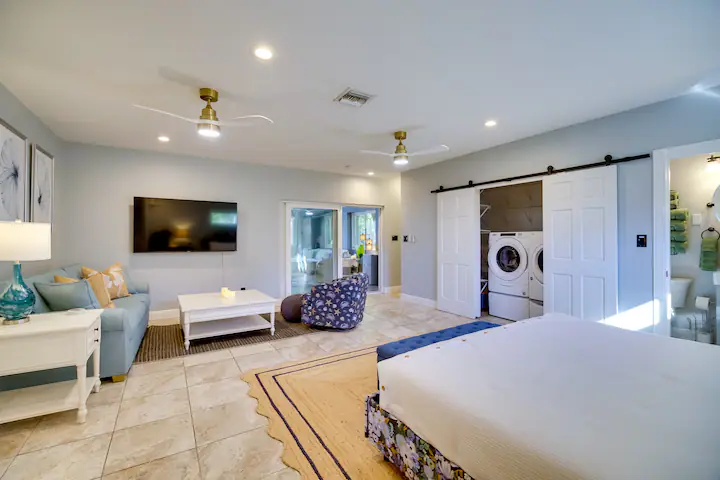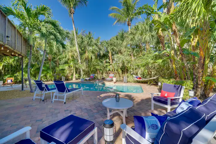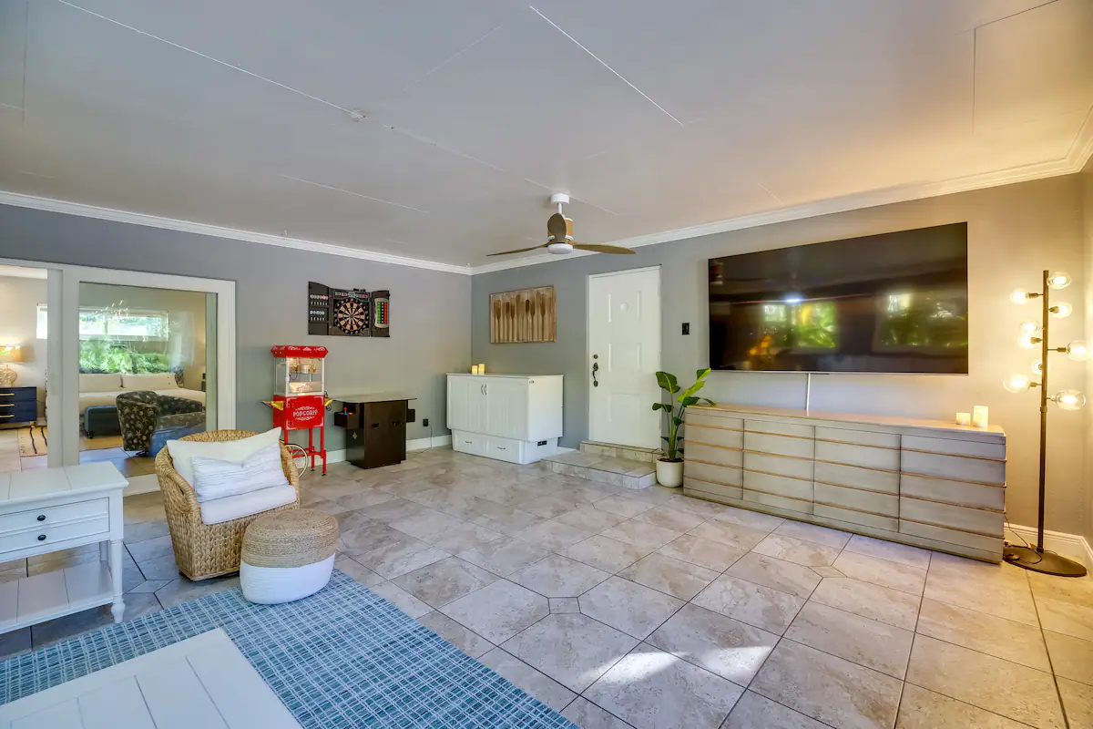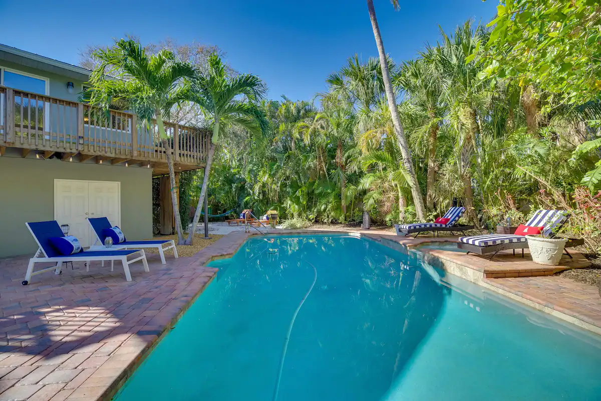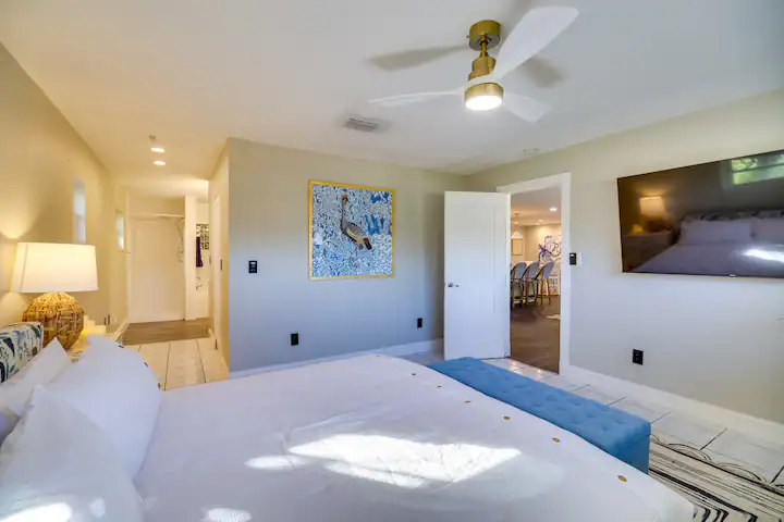 Your guests will be enchanted by every feature: a sparkling saltwater pool glistening under swaying palms, a rejuvenating jacuzzi for sunset soaks, and a private pickleball court that sets your property apart from every other rental. The cabana bath, cozy hammocks, outdoor griddle kitchen, and twin fire pits elevate the experience to pure paradise. Even the outdoor spaces are staged for connection and joy—ideal for family reunions, friend getaways, wellness retreats, and corporate stays seeking coastal inspiration.